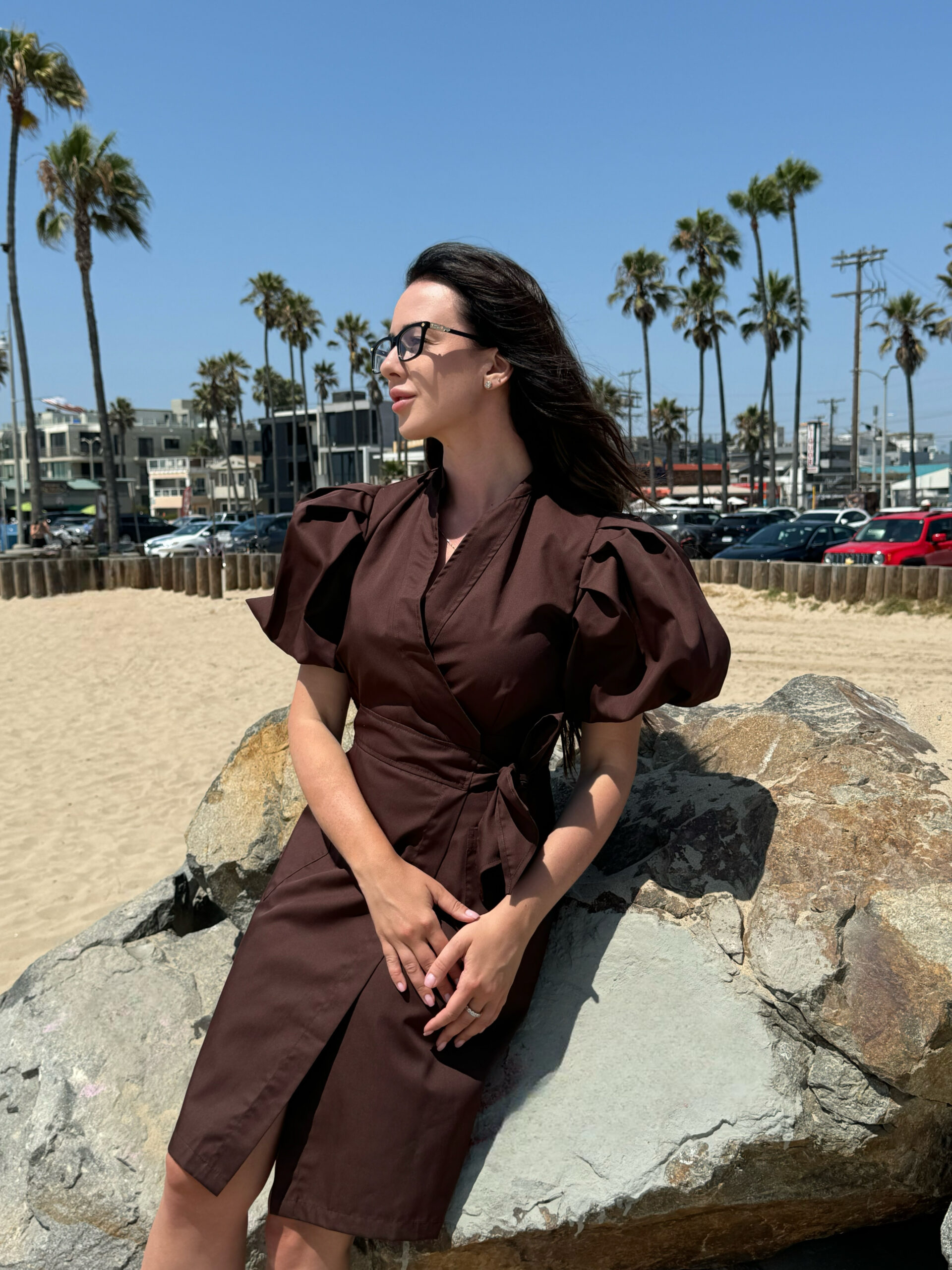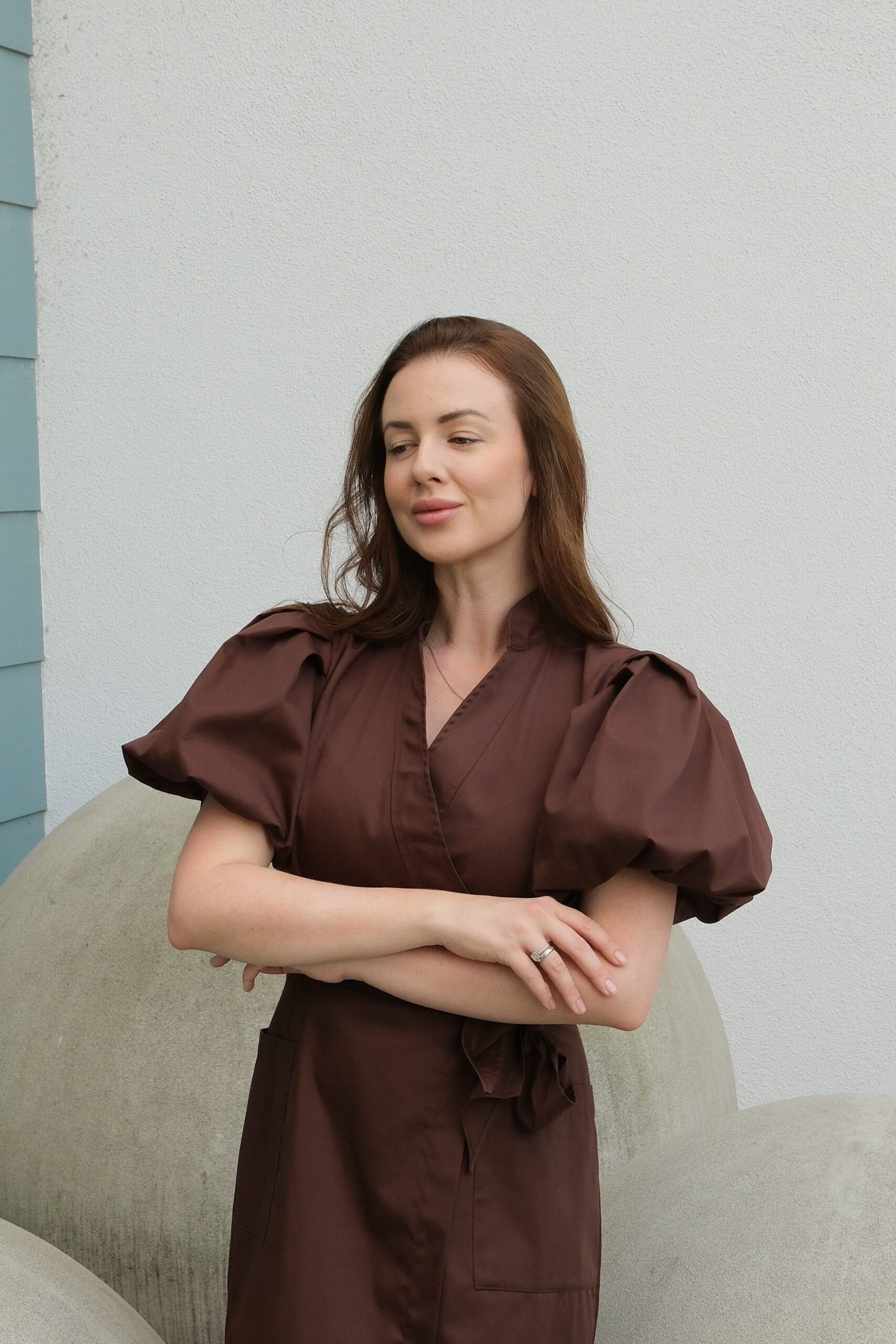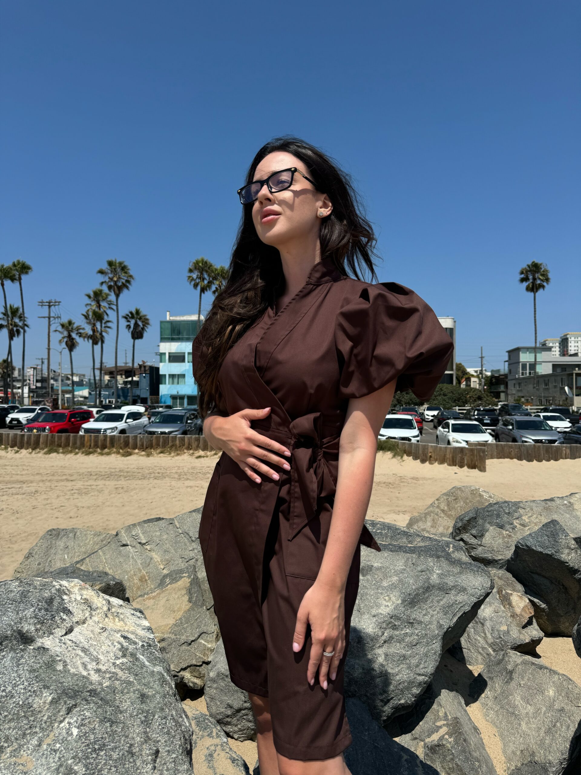 Халат із запахом, з ніжним рукавом-воланом виглядає легко та жіночно, підкреслюючи ваш стиль.