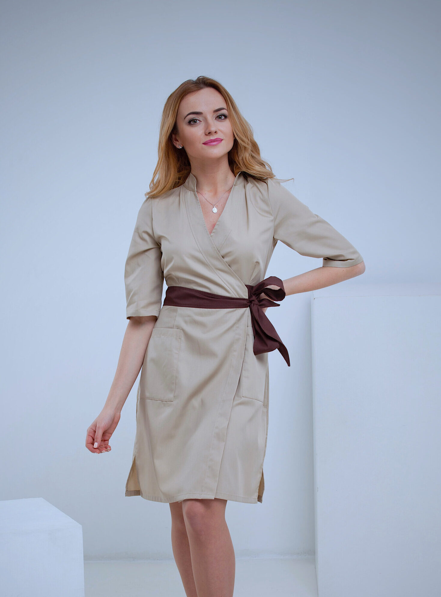 Халат Бант Sand With Chocolate — Модель створена для косметологів, лікарів і майстрів бʼюті-сфери, які цінують комфорт і досконалий вигляд під час роботи.